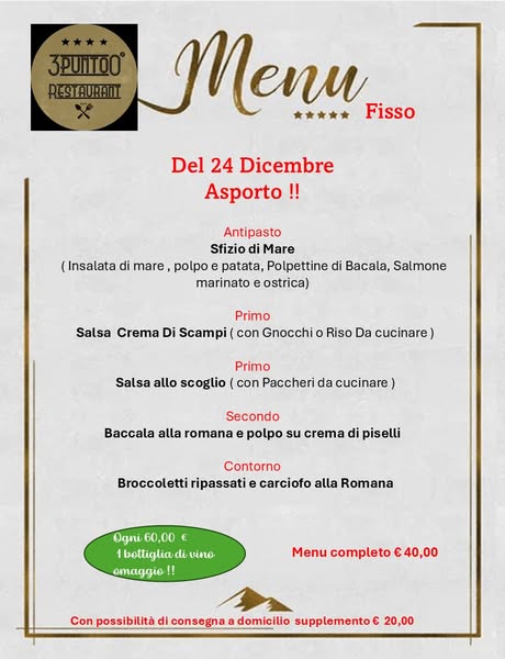 🟢Signori per il 24 Dicembre abbiamo preparato un menù d'asporto dando la possibilità di scegliere quello che più preferite, e un menu' fisso per chi non vuole scegliere !!! ❤