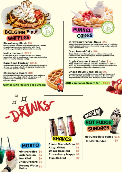 From decadent ice creams and mouthwatering cakes to a delightful selection of fresh foods and refreshing drinks, we've crafted a menu that will satisfy every craving. Whether you're in the mood for something creamy, fruity, or savory, there's something special waiting for you.