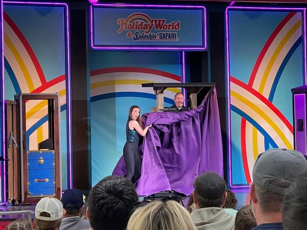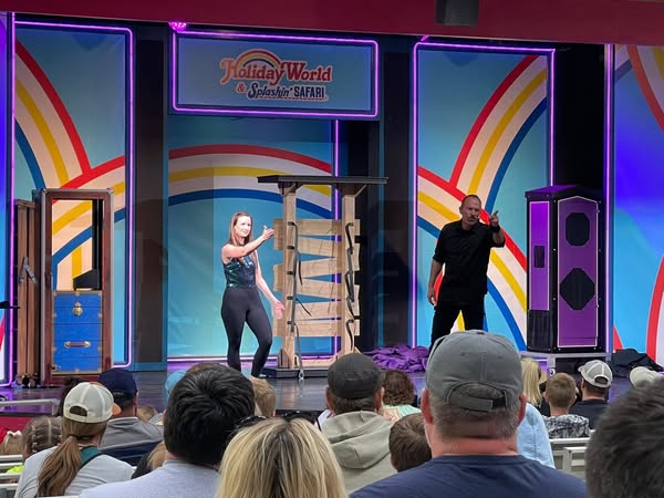 搜索关键词 magic show, comedy show, holiday world, family entertainment, summer show, illusion show, live performance, fun activities, wild wacky, Hoosier Celebration Theater优势 Family-friendly entertainment,Magic, comedy, and illusion,Multiple showtimes,Located within Holiday World