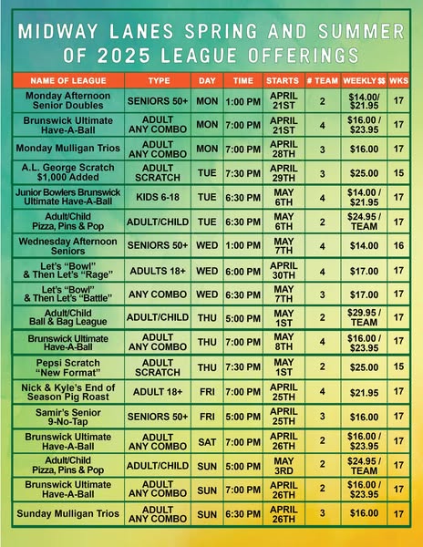 Midway Lanes is ready to kick off our Spring and Summer of 2025 League Season!!🎳🎳🎳