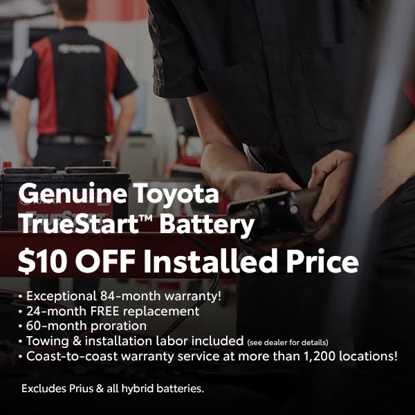 劣势Limited to Toyota vehicles only.,Must present coupon.,Excludes tax and shop supplies.,Not valid with other offers.,Excludes prior sales.,Valid only at specific dealership.