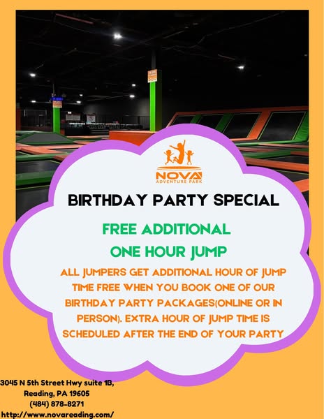 🥳🥳We're excited to announce that we're offering additional free 60 minute jumping time for all jumpers when you book a party with us!