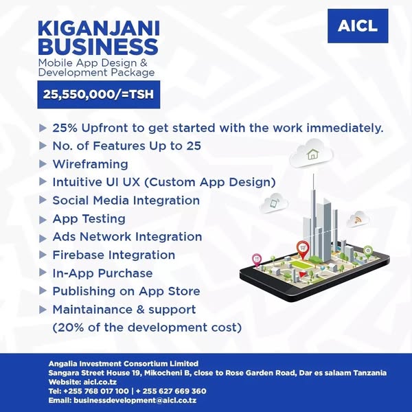 Step into the future with Kiganjani Package Solutions! 🚀 Our cutting-edge apps are revolutionizing industries, from business to entertainment. 💼✨ Explore our cost-effective bundles designed to elevate your business game! #AppDevelopment #Innovation #TailoredSolutions