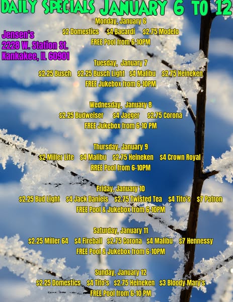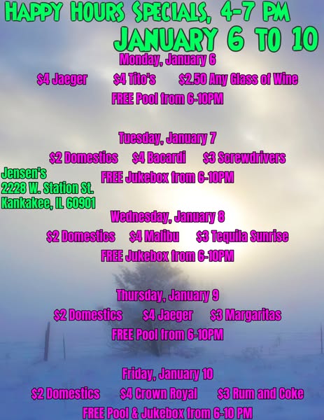 🎉 Get ready for a week of fun at Jensen's! 🍹 Enjoy daily specials, happy hour specials, and FREE pool from 6-10PM on select days. Don't miss out on our gaming machines - our players won BIG last week with $83,797.70 in winnings! 🤑 Drive thru open until 2AM and now accepting credit and debit cards. See you there! #JensensSpecials #WinBig #DriveThruCheers #jensensliquorsandlounge🥂
