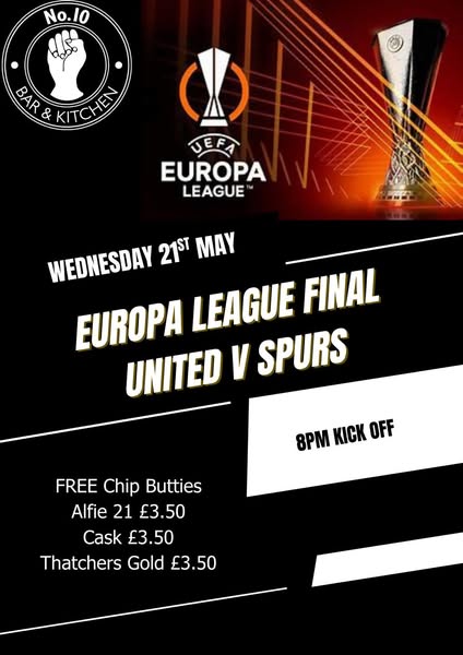 On Wednesday we will be showing all the action from the Europa League Final is high definition on our NEW Sky TV system. We will be dishing out FREE chip butties at half time and we’re also selling pints of Alfie 21, Cask and Thatchers Gold at just £3.50 a pint from 5pm until closing. Please note our popular Quiz is cancelled for one week only due to the football.