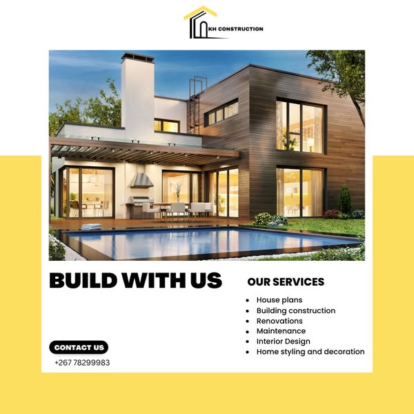 搜索关键词 Building construction, house design, construction services, civil engineering, architecture services, construction contractor, Botswana construction, home building, complete construction, professional construction team优势 One-stop shop,Professional team,Design and build capabilities,Fittings and finishes included