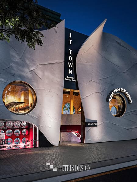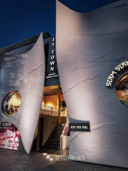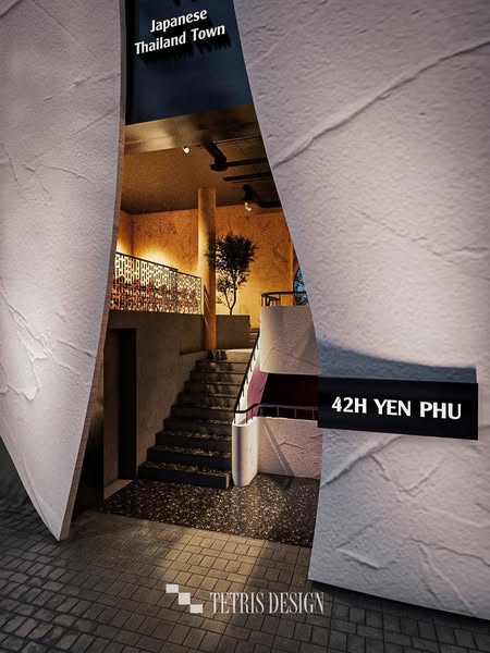 搜索关键词 restaurant design, cultural architecture, soundproof design, vietnam architecture, Hanoi restaurants, commercial interior design, unique restaurant concept, Tetris design team, Yen Phu restaurant, Thai Japanese design优势 Soundproofing Expertise,Unique Design Solution for Challenging Spaces,Cultural Integration in Design,Visually Appealing and Functional Facade