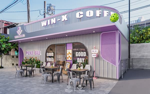 Located in Win x Pickleball District 4, the coffee shop has a gorgeous lilac purple finish, ideal for resting after an hour of pickleball games.