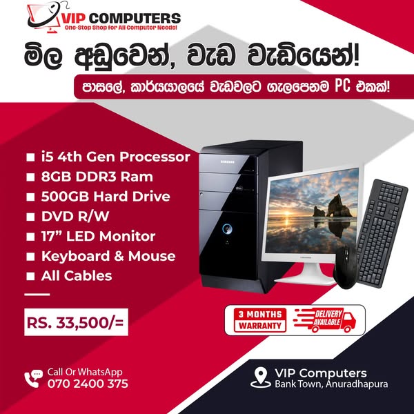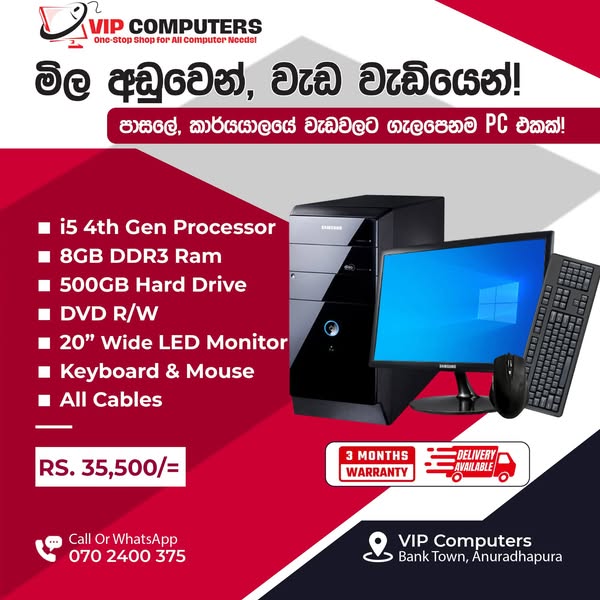 搜索关键词 Low budget computer, Branded desktop, Sri Lanka computer, Office computer, School computer, Windows 10 computer, Anuradhapura computers, VIP Computers, Computer sale, Affordable desktop优势 Low Budget,8GB RAM,Windows 10 + MS Office,3 Months Warranty,Friendly Service