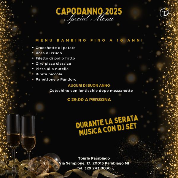 搜索关键词 new year party, capodanno 2025, Parabiago event, party with music, family new year, limited seats available, dj set party, new year celebration, entertainment for kids, Tourlé Parabiago优势 Music and DJ set all night,Area for children,Organized New Year's Eve party
