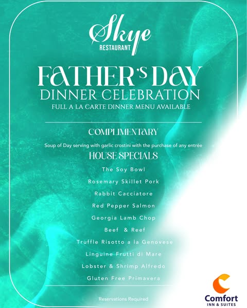 On Sunday 15 June, Comfort Inn and Suites will celebrate the fathers in our lives with delicious meals all day long!