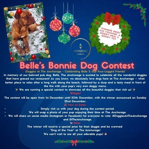 🌟From 1st - 22nd December - Belle's Bonnie Dog Contest - celebrating all of the dogs that visit the Anchorage - we love them all and want to celebrate them by giving them a lovely Christmas gift 🐶