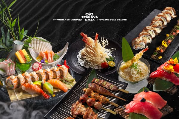 🍢 Tại OiO, mọi trải nghiệm đều được “lên mood” chỉn chu – từ menu izakaya cực chất với sashimi, xiên nướng, tempura…