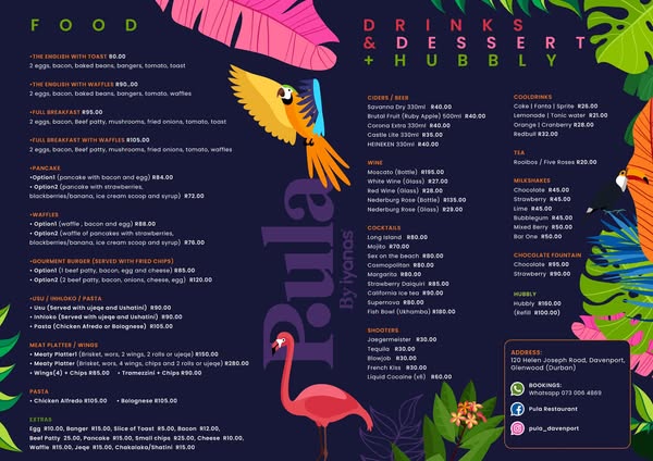 搜索关键词 restaurant davenport, breakfast all day, soccer games, bring your own alcohol, late night restaurant, Helen Joseph road, south africa restaurant, bar specials, casual dining, weekend vibes优势 Open till late,Breakfast available all day,BYOB policy,Soccer games on screen