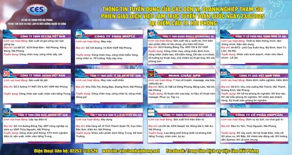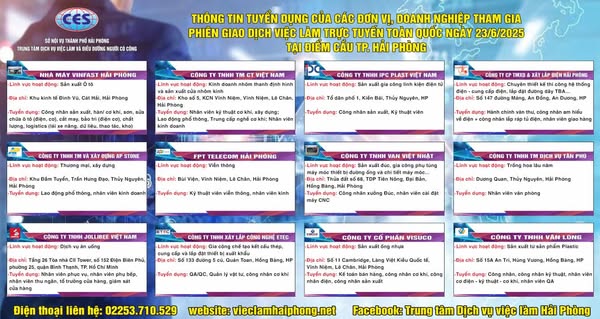📲 Người lao động có nhu cầu tham gia phỏng vấn trực tuyến vui lòng inbox Fanpage: Trung tâm Dịch vụ việc làm Hải Phòng để được hỗ trợ.
