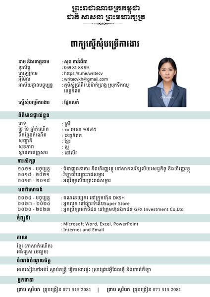 ✅ ផ្តល់ជូនគំរូcvជាច្រើនជម្រើស