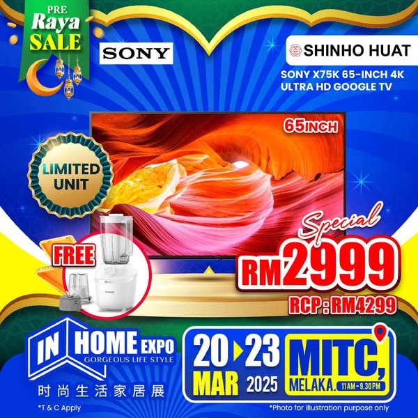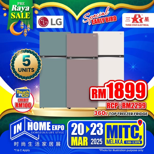 搜索关键词 Raya Sale, Home Appliances, Furniture Sale, Melaka MITC, Early Bird Offers, Lucky Draw, Discount Deals, TV, Washing Machine, Refrigerator优势 Early Bird Offers,Purchase with Purchase (PWP) Deals,Lucky Draw with Cash Prizes,Daily Cash Rebate Vouchers,Discounts up to 70%