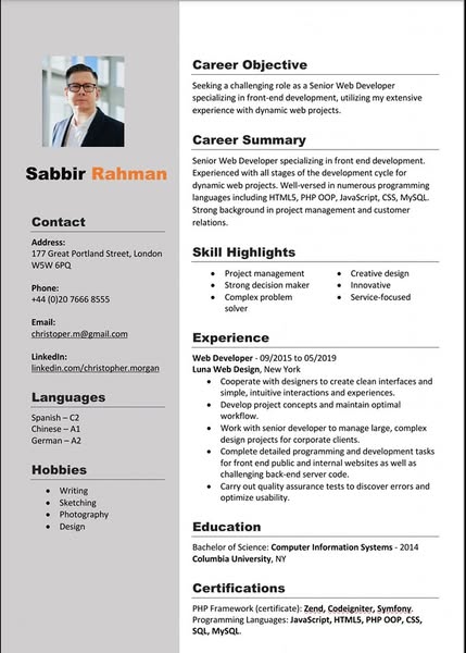 7. Standard Format এ যেসব কন্টেন্ট থাকে সেইসব কন্টেন্ট এর ওপর ভিত্তি করেই CV/Resume টি বানানো হবে।