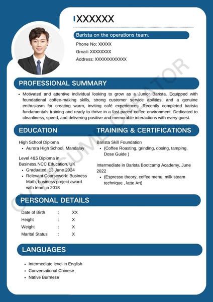 No .. ကျောင်းလျှောက်တာ / Visa try တာ/ Artistry Career e.g [DJ Resume Profile] တွေအတွက်ပါ ပြင်လို့ရပါတယ်