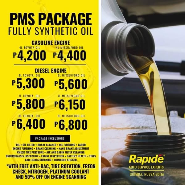 搜索关键词 Rapide Guimba, Auto Service, Car Repair, Nueva Ecija, Ber Months Promo, Car Maintenance, Online Appointment, Auto Shop, Automotive Service, Extended Promotion优势 Extended promo period,Availability for both walk-in and online appointments,Easy to contact through phone and Facebook