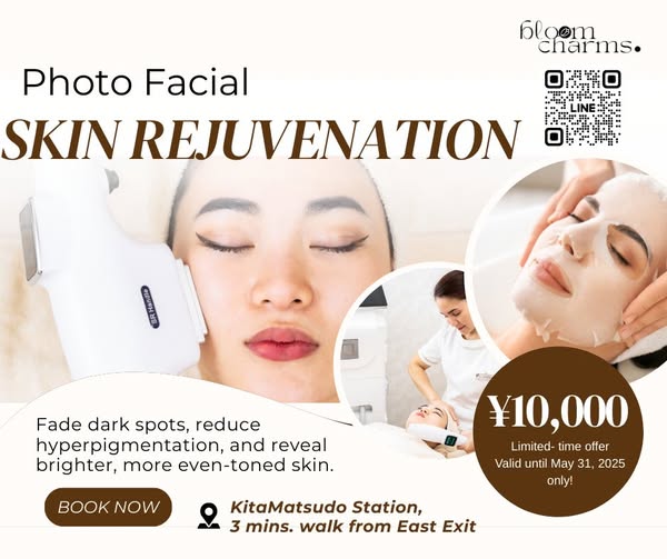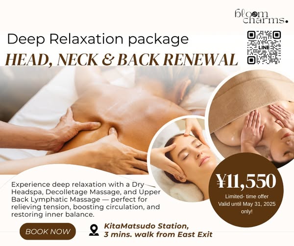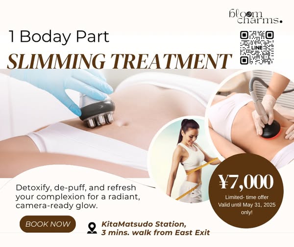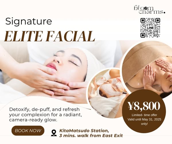搜索关键词 beauty salon, Japan, anniversary promotion, salon services, KitaMatsudo Station, online booking, beauty perks, Chiba salon, Bloom & Charms salon, salon deals优势 Anniversary Perks,Convenient Location (near station),Online Booking Available