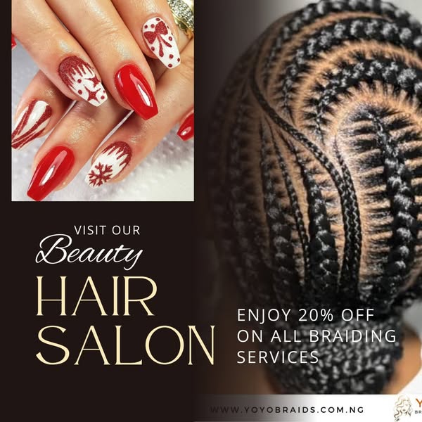 搜索关键词 Valentine's beauty deals, braids Lagos, Nigeria salon, haircuts Nigeria, lash services, Yoyo Braids, beauty discounts, affordable beauty, Northern Foreshore, Lagos beauty优势 20% off on various beauty services,Valentine's special extended for the whole month,Services for both men and women