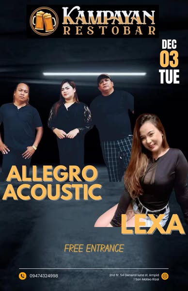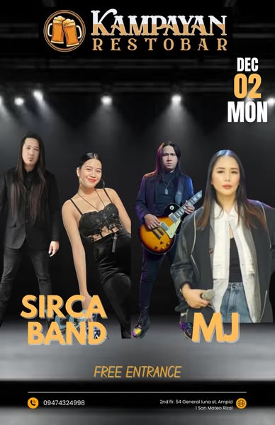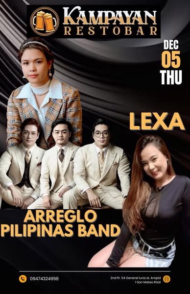 搜索关键词 live music, resto bar, san mateo rizal, free entrance, night life, kampayan resto, restaurant and bar, music schedule, late night, philippines bar优势 Free Entrance,Great Music,Late Night Hours