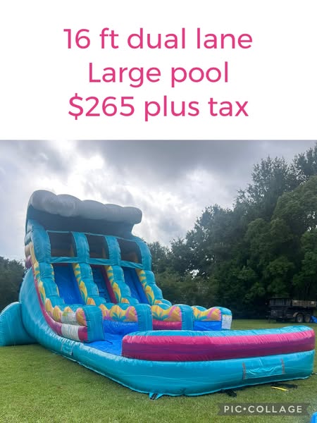 Friday drop off Sunday evening pickup for the price of one day. 😀 Free delivery within 20 miles of our Summerdale location. ☀️ 💦 All prices are plus tax 🏖️ Give South Baldwin Bounce and Waterslides a call 📱 or text to reserve. 🛥️ $25 deposit 💵 to reserve.
