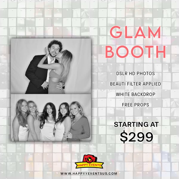 搜索关键词 glam booth, black and white photos, airbrushed look, event photography, iconic photos, trending photography, elegant photo booth, flawless photos, party photos, wedding photo booth优势 Flawless black & white photos,Airbrushed look,Elegant and iconic style,Trending appeal