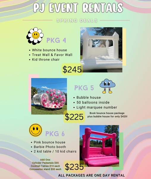 ✅Guaranteed availability; secure bounce house and essentials so you don’t miss out.