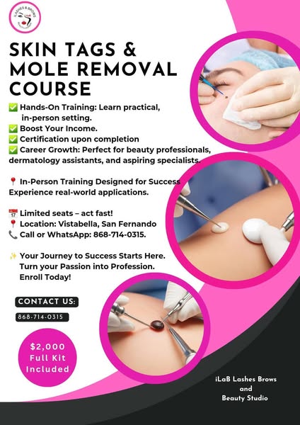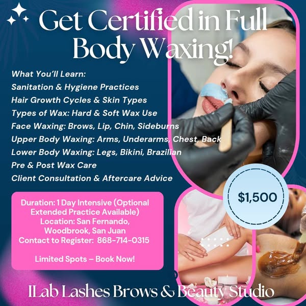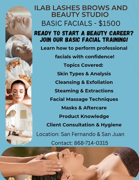 BE YOUR OWN BOSS. CHOOSE ONE OF OUR COURSES AND GIVE YOURSELF FINANCIAL FREEDOM. WHATSAPP TO CHAT MORE ABOUT BUIILING YOUR CAREER IN THE BEAUTY INDUSTRY 868-714-0315 GROUP OR INDIVIDUAL ONE ON ONE CLASS. LOCATION SAN FERNANDO, WOODBROOK OR SAN JUAN WEEK DAYS AND WEEEKENDS AVAILABLE.