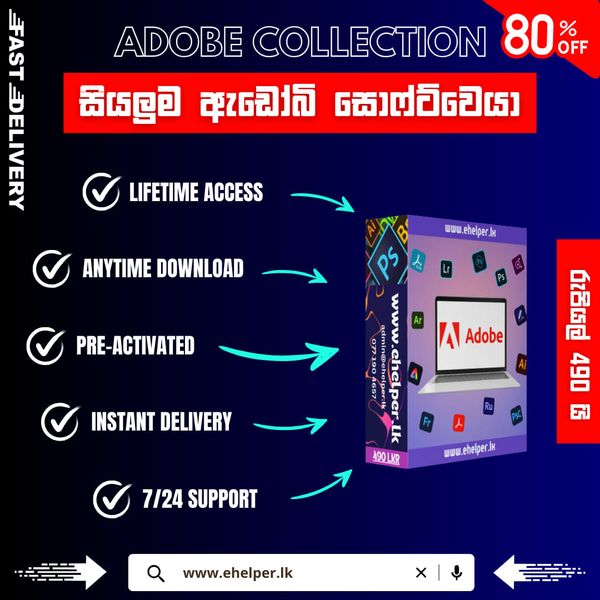 ▪ ඇඩෝබි Photoshop / Illustrator මුල සිට අග දක්වා Practical එක්කම ඉගෙන ගන්න ( ඇක්ටිවේට් කරන ලද සියලුම ඇඩෝබි සොෆ්ට්වෙයා ( 2020/2021/2025 ) කට්ටලය සහ ඇඩෝබි ටෙම්ප්ලේට් බන්ඩලය නොමිලේ 2,000 GB / File Types ; AI , PSD , PRPROJ , AEP , CDR , LR , PPTX , XPS Fully Editable File Access )