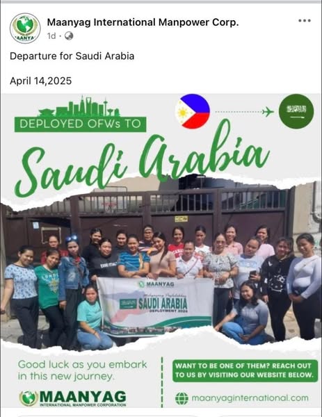 搜索关键词 domestic worker abroad, overseas job hiring, saudi arabia job, bahrain job, legit agency, ofw recruitment, MAANYAG INTERNATIONAL, female job abroad, caregiver job, ex abroad welcome优势 Legitimate Agency,Safe and Secure Placement,Multiple Destinations (Saudi Arabia, Bahrain, Kuwait, Oman)