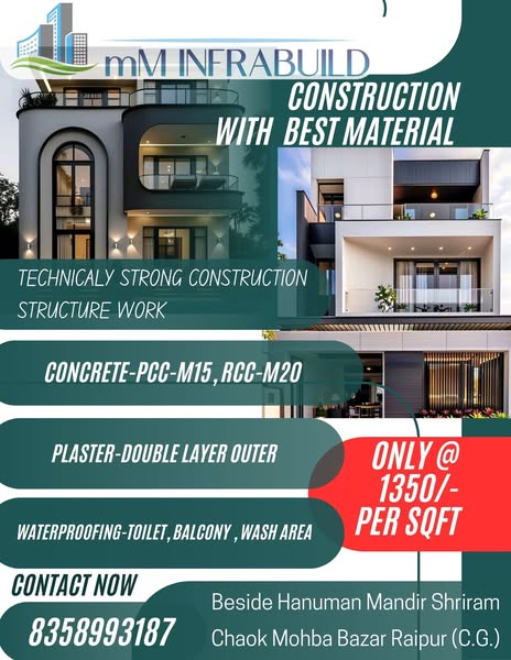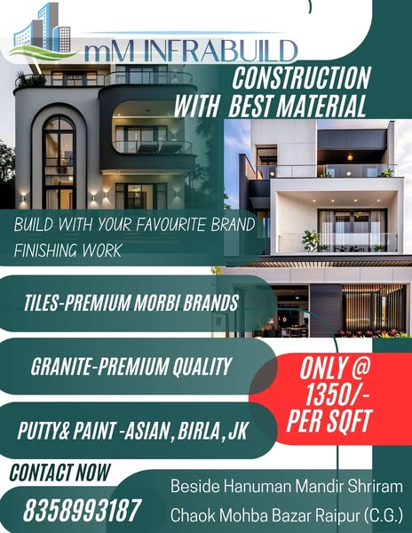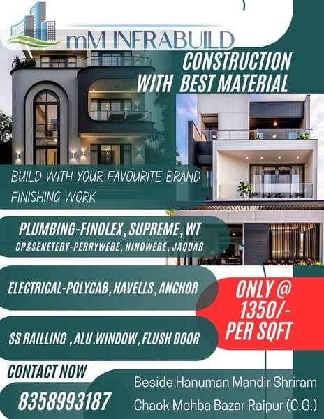 Quality Construction with Top Brand material is Starting @ just 1350/- per sqft only....