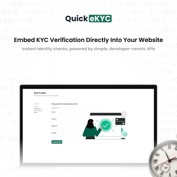 🚀 Complete eKYC API Suite – Accelerate Your Customer Verification Instantly! 🚀 Description: Unlock the power of seamless digital verification with our robust, developer-friendly eKYC APIs—tailored exclusively for fintech innovators, startups, and software development teams. Our suite includes Aadhaar-based biometric authentication, real-time PAN verification, automated document validation, AI-driven facial recognition, and comprehensive AML/KYC compliance checks. Build faster, verify instantly, and scale effortlessly. Whether onboarding millions or enhancing regulatory compliance, our APIs ensure secure, rapid, and hassle-free integrations. ✅ Aadhaar eKYC & Biometric APIs: Instant OTP & biometric authentication ✅ PAN Verification APIs: Validate PAN details in seconds ✅ Document Verification APIs: Automate validation of ID documents seamlessly ✅ AML & Compliance APIs: Real-time AML, KYC, and regulatory checks ✅ Developer-First Integrations: Clear documentation, robust SDKs & easy integration 🎯 Trusted by Fintechs, Banks, and Software Developers across India. 👉 Start Integrating Today & Transform Your Customer Onboarding!