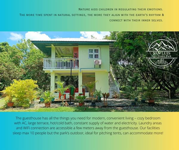 搜索关键词 agriforest park, san luis, nature park, outdoor activities, family park, eco tourism, oriental mindoro, restored farm, nature escape, affordable park优势 Affordable entrance fee,Quiet time with nature,Family-friendly outdoor activities,Restored natural environment