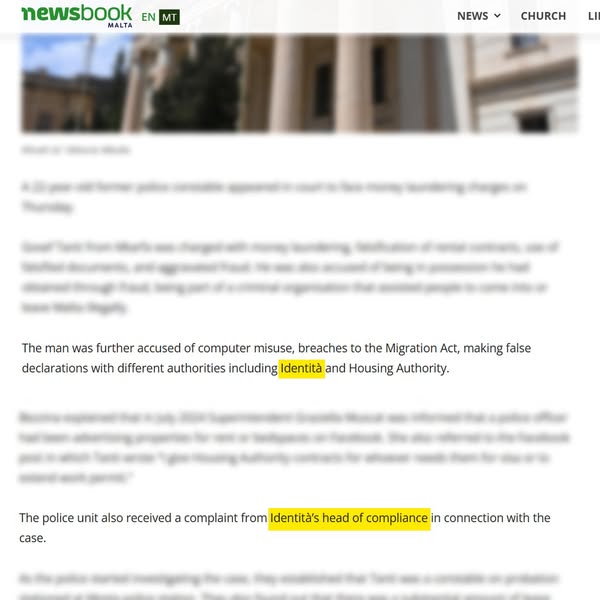 Identità proudly notes that once again an investigation initiated by its Compliance Unit and referred to the Malta Police has progressed to legal proceedings in the Maltese Courts of Law.