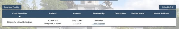 搜索关键词 Tinley Park Racino, Glotz, Hastings, Bob Rita, Racino Controversy, Political Funding, One Tinley Park, Former Mayor Vandenberg, Corruption Allegations, Local Politics优势 Provides evidence of past actions,Names specific individuals involved,Highlights financial contributions