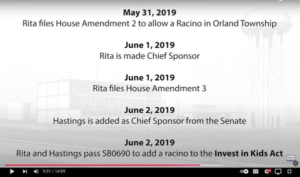 Senator Hastings, Bob Rita, former Mayor Vandenberg, and former Trustee Brian Younker set the groundwork for bringing the Racino to Tinley Park in 2017, not our current board.