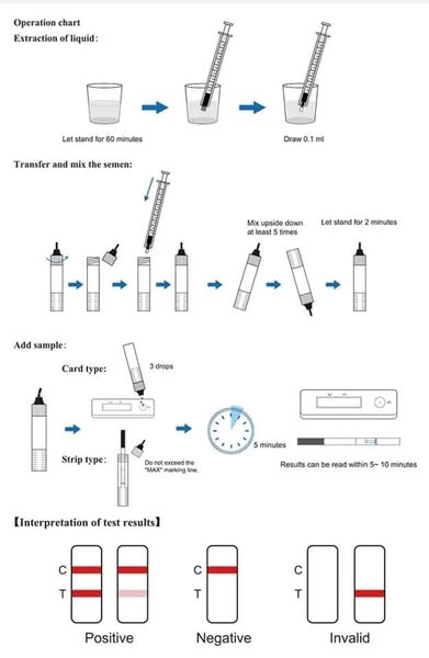 Ce produit peut être utilisé non seulement pour le dépistage préliminaire de la concentration de sperme dans les établissements médicaux, mais aussi pour les consommateurs à tester à la maison pour juger au préalable si le niveau de concentration de sperme répond à la norme.