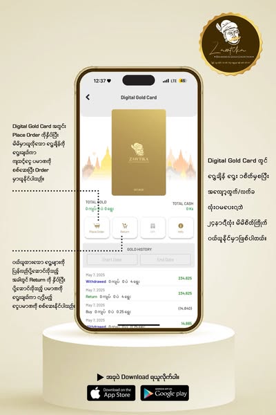 搜索关键词 Zawitka Gold, Gold app Myanmar, buy gold online, premium gold card, digital gold card, custom jewelry, jewelry store, gold collection, Diamond Gold, Physical Gold card优势 Easy to buy gold via app,Offer Physical Gold Card,Can order custom jewelry designs,Digital Gold Card with no deduction,24-hour mobile banking payment,Live Chat support