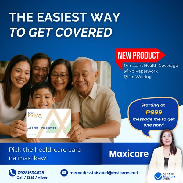 🩺 PRIMA Series (Preventive Outpatient Care)All PRIMA plans allow unlimited consultations and diagnostic services at Maxicare Primary Care Clinics (PCCs), with no waiting periods and full coverage of pre-existing conditions 🚨 Emergency-Only Prepaid Cards Counters with limited emergency coverage; consults included but no outpatient diagnostics unless specified.