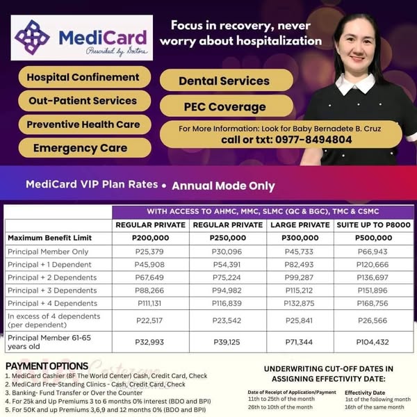 搜索关键词 cashless healthcare, HMO plan, medicard philippines, health insurance, medical coverage, annual physical exam, emergency care, dental care, outpatient services, inpatient services优势 Cashless transactions,Care without upfront payments,Wide range of coverage (Inpatient, Outpatient, Emergency, Dental),Annual Physical Exam (Standard Plan),Executive check-up (VIP Plan),Access to Assist America