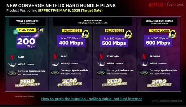 搜索关键词 converge internet, fiber internet, sky tv, netflix bundle, unlimited internet, pangasinan area, cable channels, fast internet, affordable internet, payment upon installation优势 Extended Free Installation,Fast Application Process (1-2 days),Payment Upon Installation,Unlimited Internet,Bundled with Cable TV or Netflix,Various Speed Options
