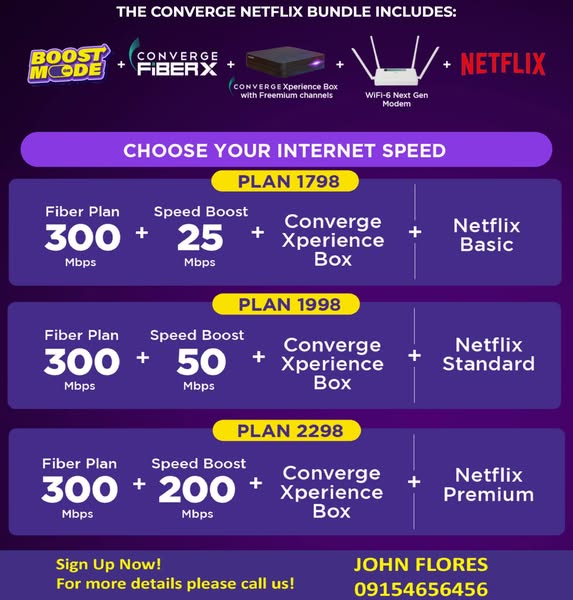 搜索关键词 converge fiberx, unlimited data, fast internet, netflix plans, sky tv bundle, philippines internet, home internet, fiber internet, high speed internet, cable tv plans优势 Free Installation,Fast Installation (24 hours),Unlimited Data,Blazing Fast Speeds (up to 1Gbps),Bundled with Sky TV/Cable and Netflix options