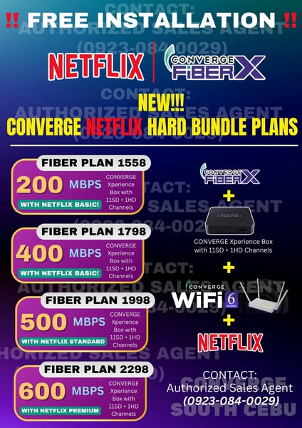 搜索关键词 Converge FiberX Netflix, Philippines internet plan, high speed internet, cable tv bundle, free installation, same day installation, converge internet, Netflix bundle plan, sky tv channels, fiber internet plan优势 Free Installation,Same Day Installation,Bundled with Netflix,High-Speed Internet (up to 800 MBPs),Local SkyTV Channels