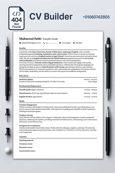 🔹 محتوى قوي وجذاب: يعكس مهاراتك بأفضل صورة باستخدام كلمات مفتاحية مؤثرة.