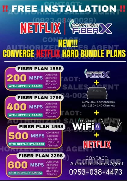 搜索关键词 Converge FiberX, fast internet, philippines internet, fiber internet, unlimited data, free installation, netflix bundle, WiFi 6, Business Internet优势 Fast internet speeds,Free installation (limited time),Unlimited data, no data capping,Plans for both residential and business,Bundled plans with Netflix and other channels,WiFi6 modem options