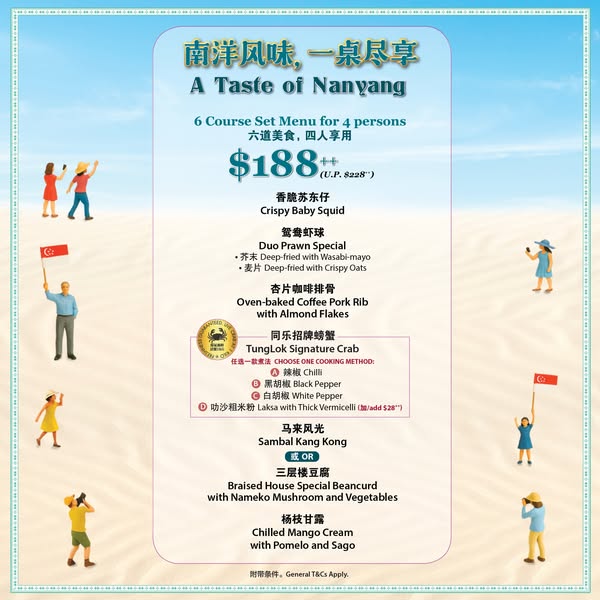 搜索关键词 Singapore seafood, Nanyang cuisine, SG60 promotion, TungLok Seafood, Singapore restaurant, limited time offer, local food, culinary heritage, crab dishes, restaurant promotion优势 Celebrates Singapore's culinary heritage,Award-winning crabs and signature dishes,Special pricing for a limited time,Multiple locations available