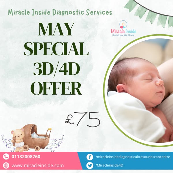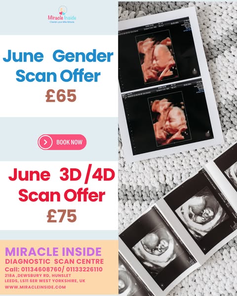 From reassurance to gender reveals, Miracle Inside offers beautifully detailed 2D/3D/4D scans with keepsake photos and videos. Expert sonographers, welcoming environment, and midweek offers available in June. Book your miracle moment now!
